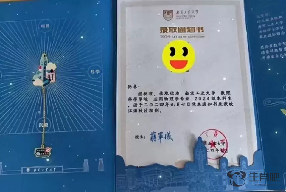 今年7月,孙卓在社交平台上晒出南京工业大学的录取通知书,通知书显示其被数理科学学院应用物理学专业录取。