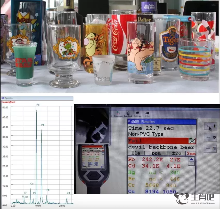 通过分析,72个杯子里,有52个杯子的颜料中检测出了铅,51个杯子中检测出了镉,在红色颜料中镉含量最高。