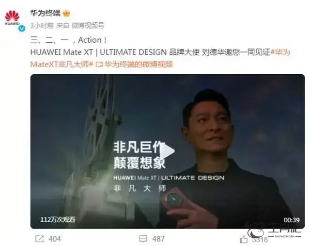 9月5日,华为终端官方微博发布一条预热视频,HUAWEI Mate XT丨ULTIMATE DESIGN品牌大使刘德华出镜,画面中露出华为即将发布的三折叠手机,MateXT非凡大师。