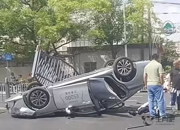 昨天(9月9日)上午10时许,上海宝山区江杨南路近通南路,发生一起两车碰擦交通事故,造成其中一辆“试驾”轿车翻车。