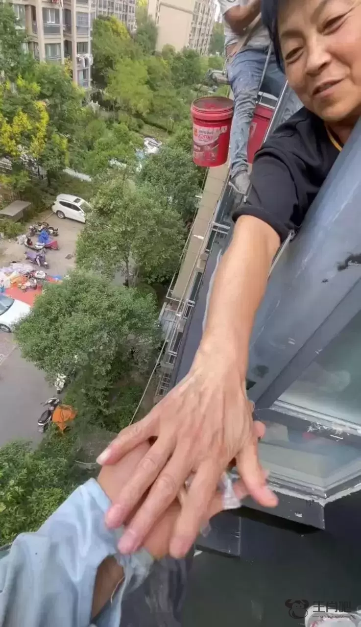 近日,在江苏徐州的某栋居民楼外墙,负责外墙维修的刘先生用手机记录下了温馨一幕。视频中刘先生与同事正在进行外墙的维修工作,一位阿姨打开自家窗户,贴心为两位维修员送上水、糖果、香烟等,阿姨面带笑容,让人倍感亲切。视频被刘先生发布在网上后引发网友热议,有网友为阿姨点赞,“能用自家吃饭的碗倒水给陌生人喝,足以证明这是一个非常善良的人。”