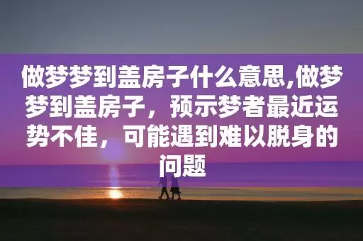 3、梦见别人家盖房子是什么意思?做生意的人梦见别人家盖房,代表守旧得意,谋大失财,春来得财。